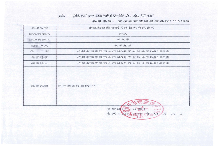 二類醫(yī)療器械經(jīng)營(yíng)備案憑證